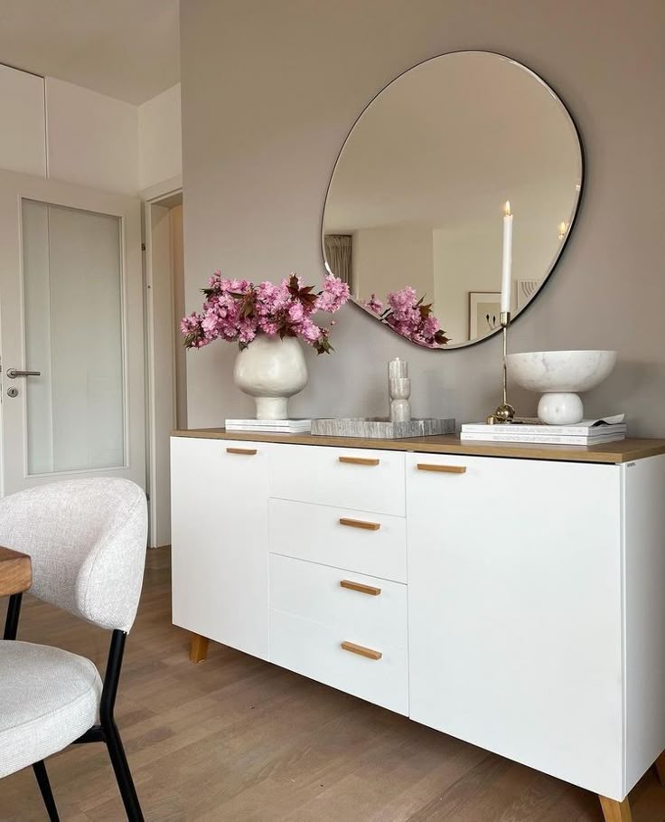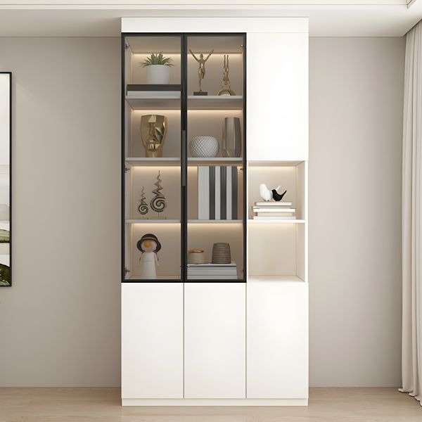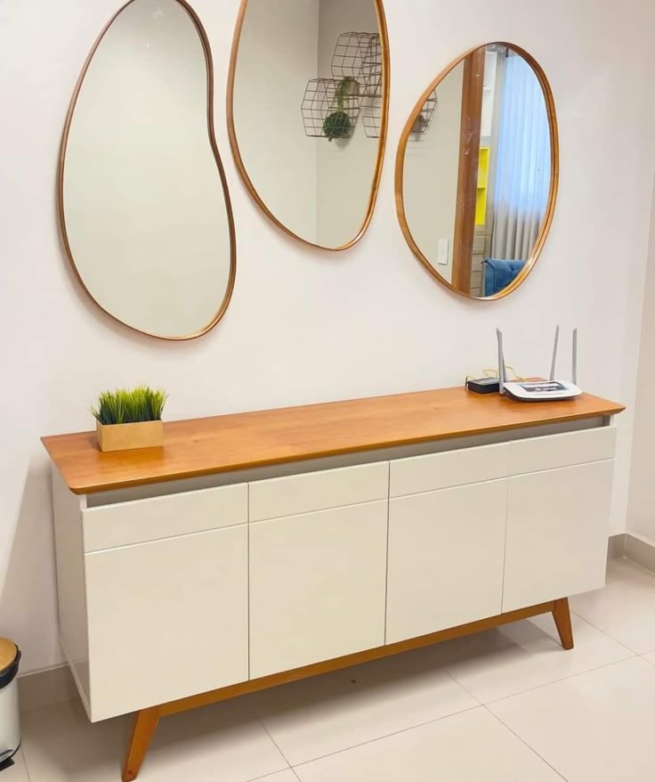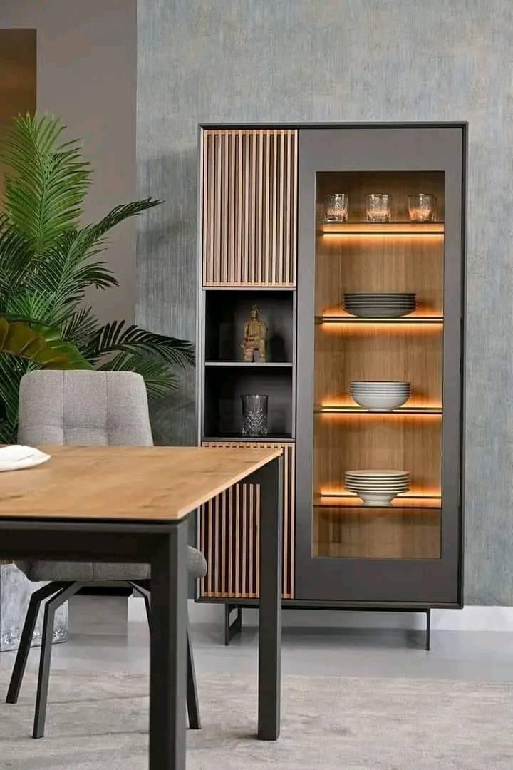 A modern custom-designed collection of buffets and hutches, crafted with sleek lines and soft neutral tones. This versatile set blends seamlessly with any interior color scheme, adding elegance and functionality to your dining space.