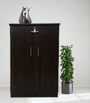 Elegant shoe cabinet in dark wood finish, featuring a spacious drawer and sleek doors for organized storage. Crafted from high-quality MDF for durability and timeless style.