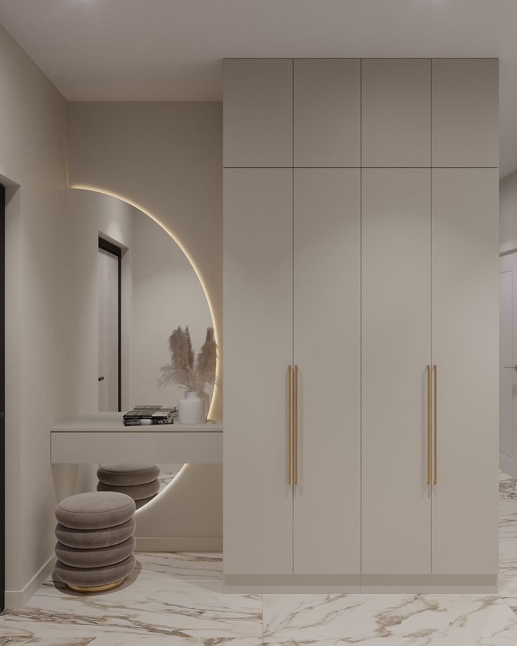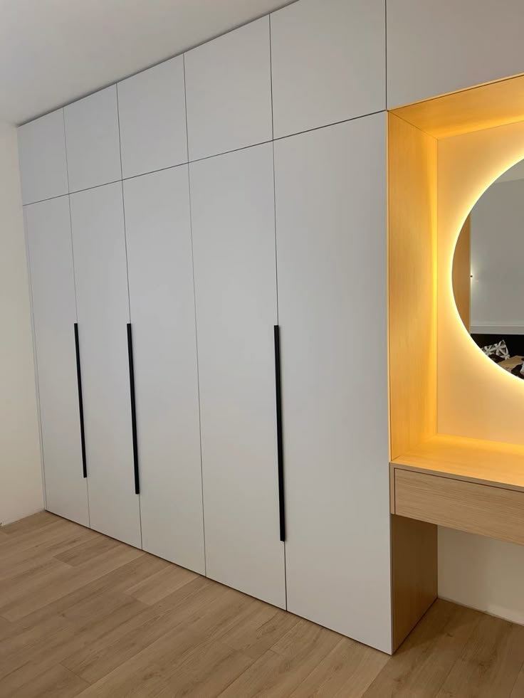 A custom-designed wardrobe and dresser set installed on a single wall, ideal for small spaces. Maximizes storage while maintaining a sleek and modern look.